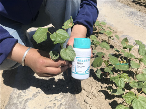 筆者走訪(fǎng)新疆市場(chǎng)發(fā)現(xiàn)大家討論說(shuō),在當(dāng)?shù)厮麄儗?duì)于除草劑殘留有妙招,經(jīng)交談發(fā)現(xiàn),大家普遍使用一個(gè)叫做安碧解的產(chǎn)品,說(shuō)效果特別好。后來(lái)與一位種植戶(hù)聊完才發(fā)現(xiàn),安碧解是拉姆拉水溶肥公司的拳頭產(chǎn)品,專(zhuān)門(mén)針對(duì)除草劑藥害研發(fā),目前在棉花應(yīng)用效果非常好,與封閉除草劑一起復(fù)配使用,除草迅速又環(huán)保。