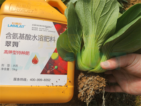 例如拉姆拉公司的翠姆沖施肥,可以通過葉噴的方式為上海青及時補充營養(yǎng),提升品質(zhì),因為翠姆沖施肥利用氨基酸作為載體的懸浮特種肥,氨基酸能快速被葉片吸收,讓葉片補充營養(yǎng)更迅速,合成更多的蛋白質(zhì)和碳水化合物,讓葉片的光合作用更強,合成的營養(yǎng)物質(zhì)更多,顏色油綠肥厚,產(chǎn)量也高,而且不含任何的激素成分,顏色更加持久不褪色。
