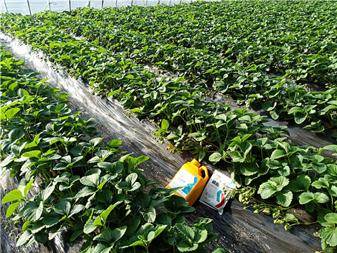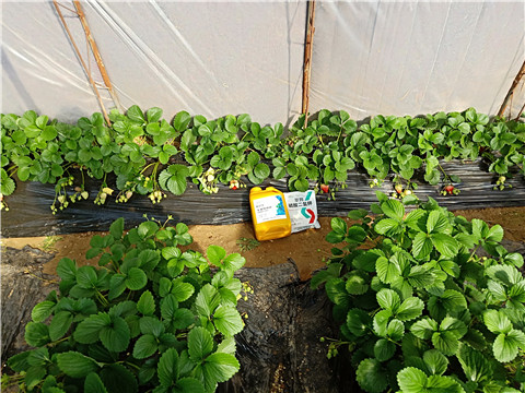 花期果實(shí)成熟期:主要抑制灰霉病、白粉病;蜜蜂輔助授粉,減少畸形果產(chǎn)生;做好防凍措施,尤其是靠近棚門(mén)的位置, 以免凍害影響。這個(gè)時(shí)期32.5%苯甲嘧菌酯懸浮劑1500-2000倍, 7~15天1次2、5%阿維菌素乳油2000倍,葉面噴施, 防治蚜蟲(chóng)、紅蜘蛛等。用藥時(shí),將蜜蜂箱移出大棚或移到未施藥棚室內(nèi)。這個(gè)時(shí)期主要是使用膨果肥,采果肥,復(fù)壯肥,為持續(xù)產(chǎn)出提供能量。